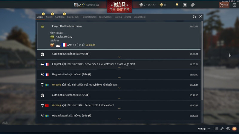 A viszonylag friss, franciska sorommal 1 kill-re és 1 ass.-ra nem kapok annyit, hogy a 2 db, kilőtt, még messze nem teljesen kifejlesztett tankom javítási költségét visszahozza...