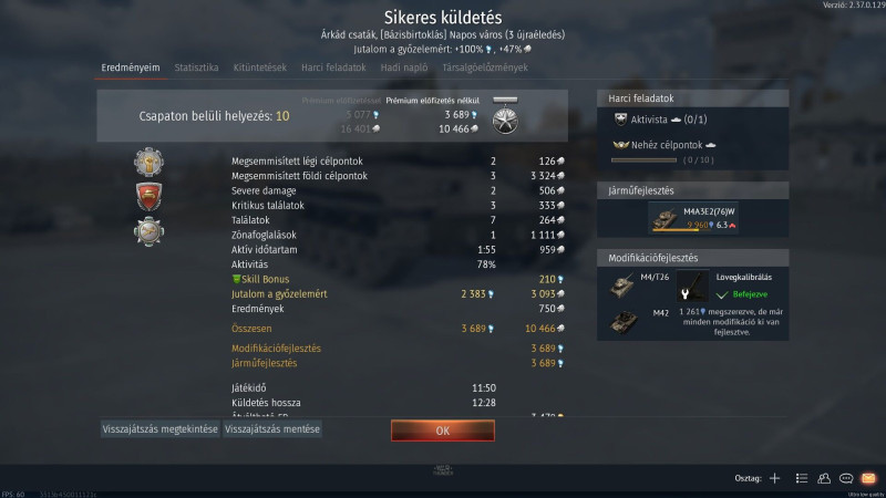 A közepes csatafokozatot én a stock gépeim fejlesztésére használom: van 10 ingyen és azonnali javítás, miközben a jutalom 2x, így hamarabb jönnek rá a modulok és a legénység is jobban fejlődik.