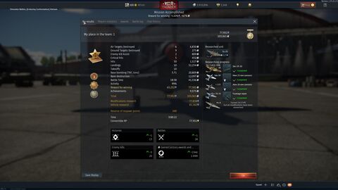 Amikor egy jarmure kapod a fejleszteseket mert hasznalod, (nagyobb bombak, motor, stb) mikor abbol kiraksz egy sort kapsz az eppen fejlesztett uj jarmuved fejlesztesehez joparezer RP-t.2. Ha sok RP-t akarsz egy repulos fan, es nem akarsz sosok csataba bemenni de van 1-2 orad jatszani, akkor fogsz egy bombazot, bemesz szimulator csataba, es nyugisan elrepkedsz, bombazol bazisokat. Persze parszor lelonek de ott akarhanyszor ujraeledhetsz. Barmikor ki is mehetsz a csatabol amikor akarsz.