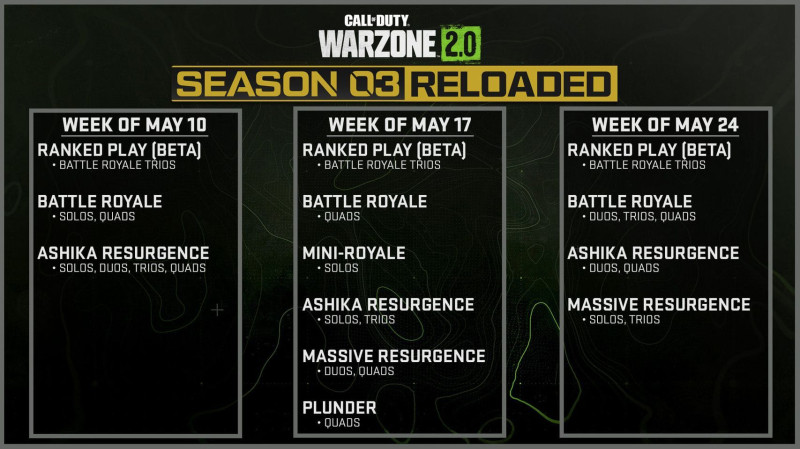 Asszem plunder(100 player, urkzistan), resurgance(44 player rebirth isnland meg area99), vannak még most playlisten. A nagy br az qaud/trio/duo/solo(de talán a két kis map szintén zenész), is, szintén urkzistan.