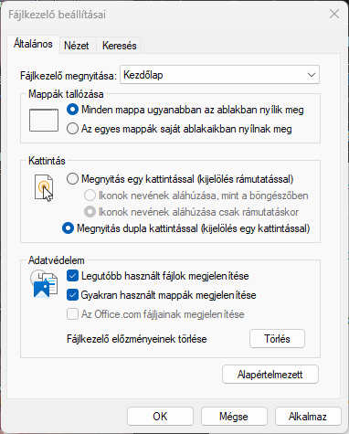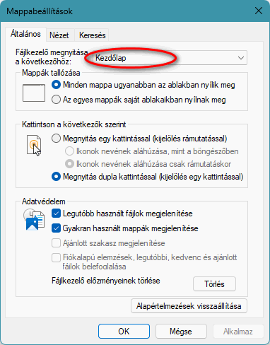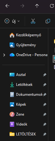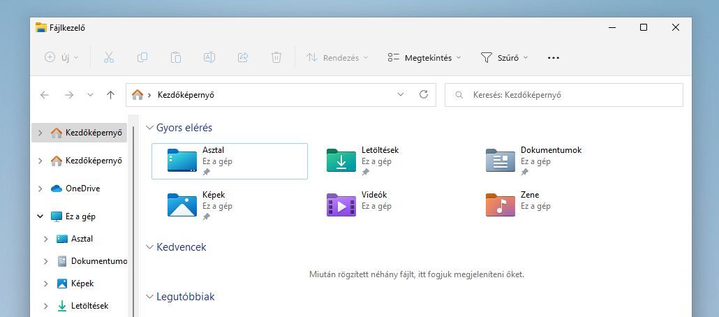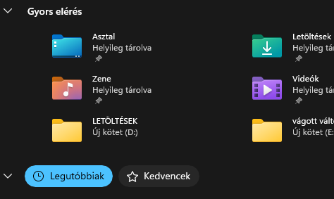 Ezen a képen felül van a Gyors elérés, alatta a Kedvencek és a Legutóbbiak.