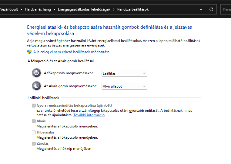 Ha esetedben folyamatosan csatlakoztatva vannak a külső meghajtók, a PC-vel és rajta a Windows 11-gyel együtt indítva és leállítva, akkor az okozhat problémát, ha be van kapcsolva a Fast Startup funkció.