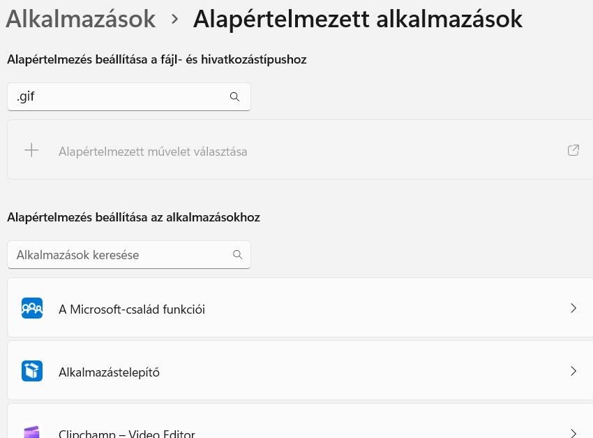 valamiért a .gif fájlokhoz nem tudom megváltoztatni az alapértelmezést, egyszerűen nem találok ilyen kiterjesztést: