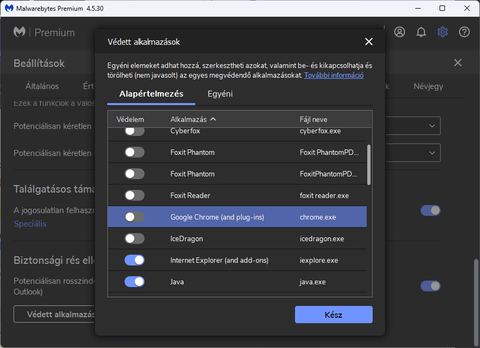Ezt kellett kikapcsolni. A másik laptopon azonos minden védelmi rendszer két dolgot leszámítva, ott Windows 10 van, és nincs MBAM.