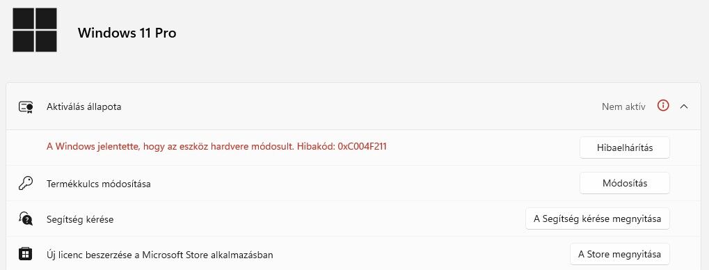 Viszont a lényeg az, hogy ha van érvényes termékkulcs, érvényes digitális licenc, akkor normál esetben jelentős hardvermódosítás is újra kellene tudni aktiválni a Windows 11-et az említett módszerekkel. Ha nem, akkor meg kérdéses, hogy az előbbi feltétel rendben van-e. -