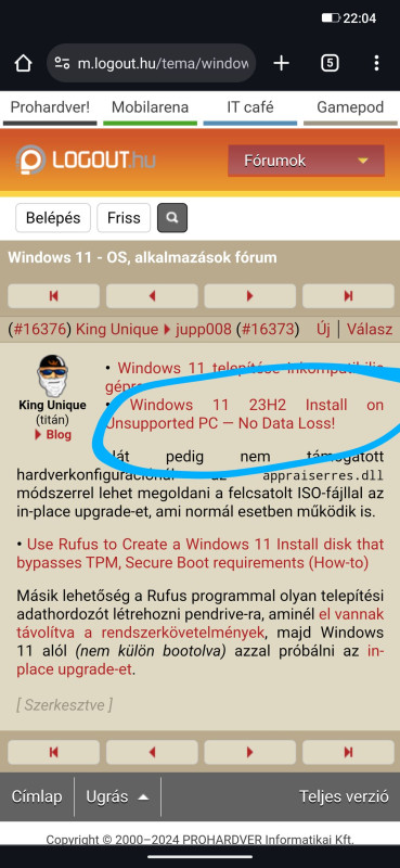 1. le kell töltenem egy legfrissebb teljes Win11 telepítőt (#19232Csorbi: ezt a linket)