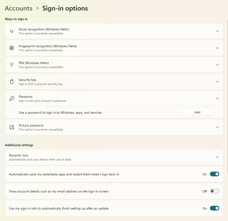 Control panelban sign in optionsban dynamic lock nincs kipipálva , screensaverben nincs pipa a require password résznél.