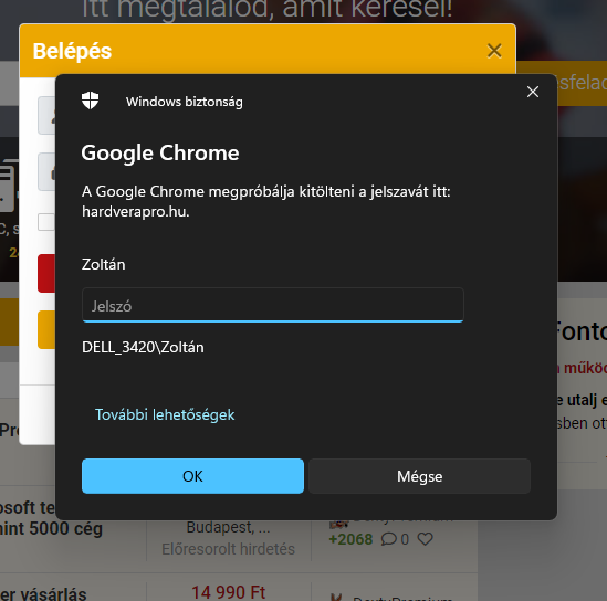 Nyilván ha be írom, utána az oldal jelszót, szépen be enged, minden rendben. Viszont, ha kilépek az oldalról, és újra be akarok lépni, akkor megint kéri a Windows jelszót is. Böngésző évek óta Google Chrome.