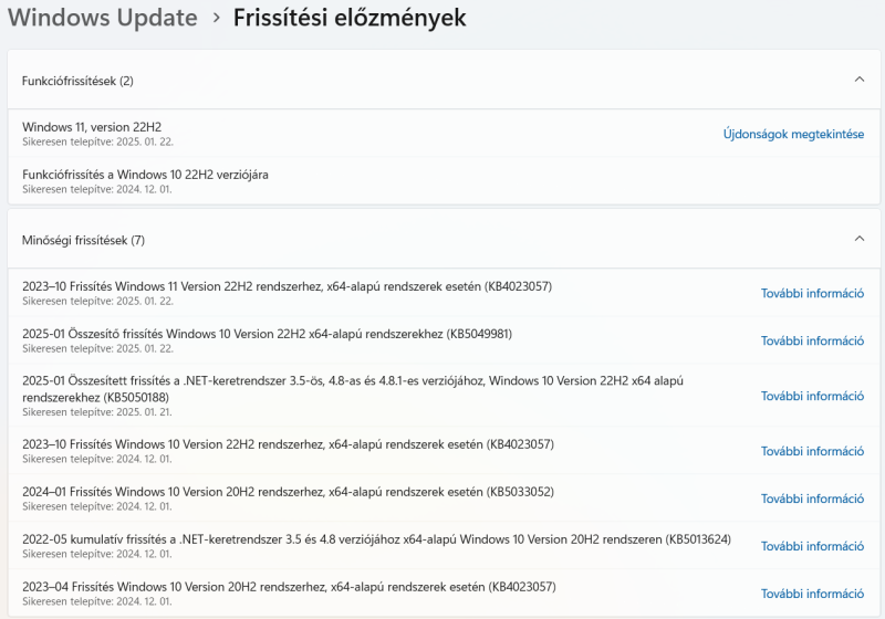 Az fura, ha csak 22H2 verzióra frissítést ajánlott fel első körben a Windows Update...