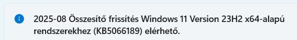Közben az augusztusi frissítés települt, a gyártó egyéb szoftvere által kínált frissítéseivel együtt, majd ezután (azt nem tudom, hogy ezeknek köze volt-e hozzá) megjelent a WU-ben a 24H2 is. Tegnap este települt gond nélkül.