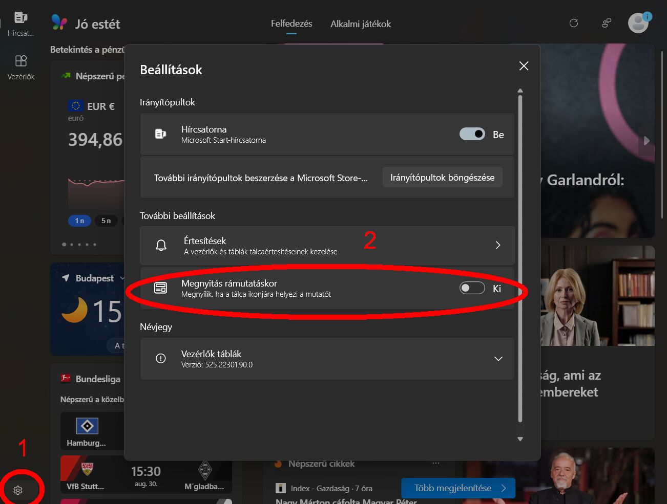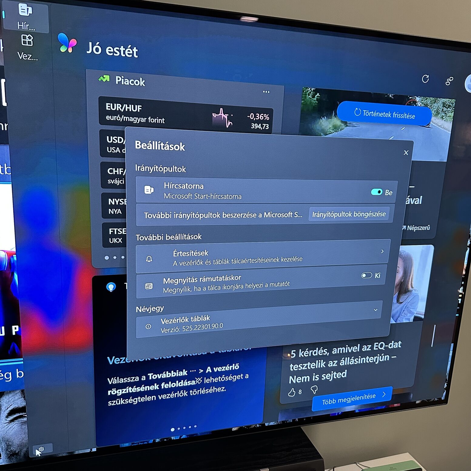 hogyan tudnám ezt a jobb oldalról beúszó Vezérlők/Táblák/Hírek ablakot eltüntetni végleg Windows 11 alól? Mindig beúszik gesztusvezérlés során egyszerű nem találtam rá opciót