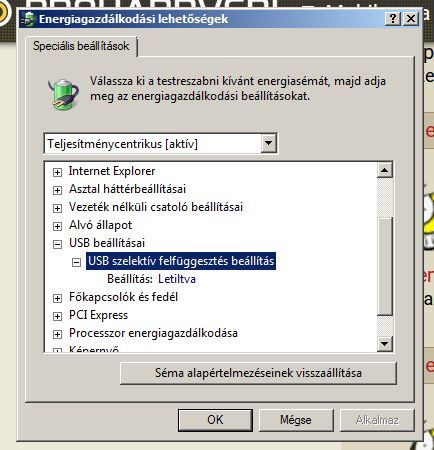 Sajnos le vagyunk tiltva róla, vagy valami, ugyanis power planben a szelektív USB beállítás szimplán nincs ott, device managerben pedig nem tudunk állítani semmit, sima userként.