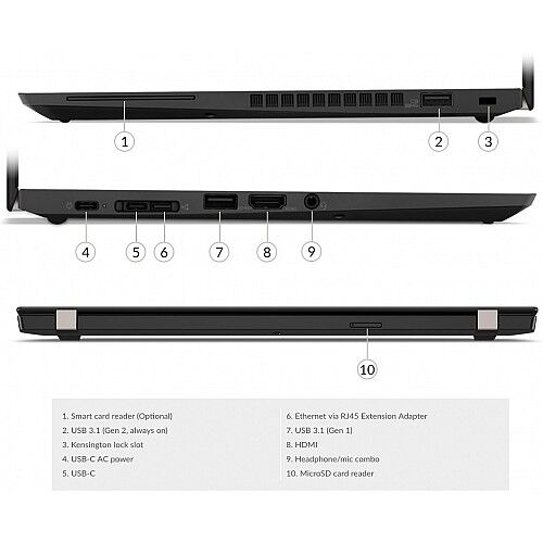 Gigabit Ethernet, Intel Ethernet Connection I219-V (non-vPro models), RJ45 via optional ThinkPad Ethernet Extension