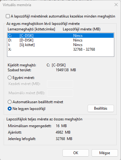 Tipp: A BitLocker-t kikapcsoltad és visszafejtetted, de a kulcs úgy maradt, ezért érzékel problémát a C: meghajtón hiányzó paging file-ra.