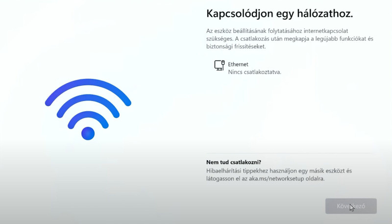 6 Majd visszadob a nyelvválasztáshoz,végigmész megint a pár lépésen,és ismét odaérsz a "kapcsolódjon egy hálozathoz,de ezuttal már ki tudod választani hogy nincs internetem.