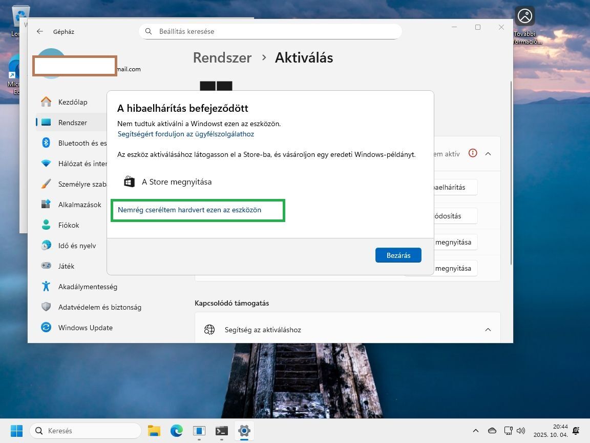5202 Bios frissítés után eldobta az aktiválást. Azt írja hardver cserét észlel.