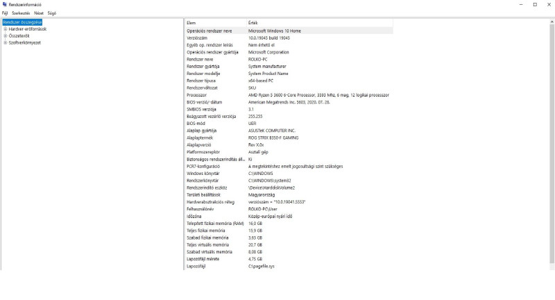 Dobj be egy képet a Rendszerinformáció összegző ablakáról.