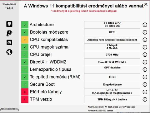 TPM nincs az alaplapon, sem a prociban, ez egy X4 860K, meg Asus A88X lap, RX550 vga.