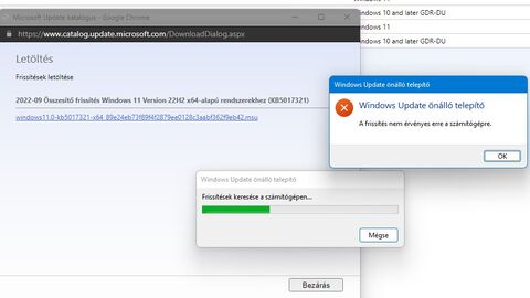 22H2 verziónál a KB5017321 számú összesítő frissítést manuálisan telepítette a Microsoft Update katalógusból letöltve, írta és linkelte is...