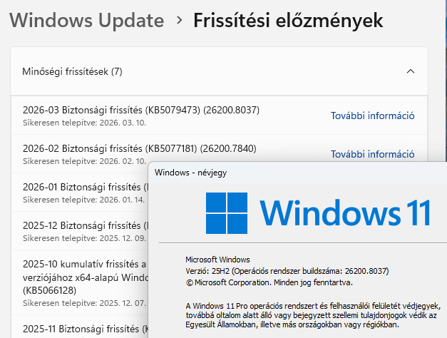 - Windows havi frissítések karban tartják ha előző feltétel teljesül.