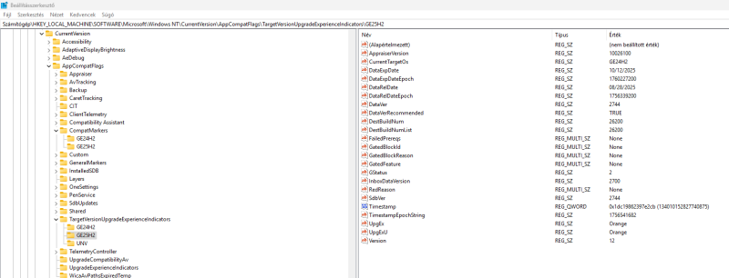 Registryben is készülnek már a telemetriakulcsok a 25H2 upgrade engedélyezéséhez: