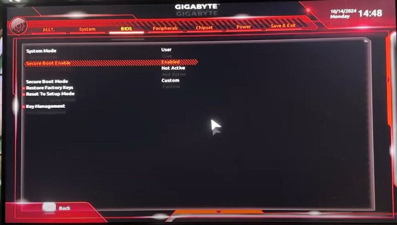Szia, köszi a javaslatot. Sajnos az én Gigabyte Aorus alaplapom BIOS-a eléggé eltér. Mindenesetre kiválasztottam a Custom módot, és a Reset Factory Keys-t. Ezután mentve kiléptem, és az újrainduláskor újra belépve, beállítottam a Standard-ot. Nem tudom, hogy tényleg ezt kellett-e tennem, de most már a Rendszerinfó bekapcsolt állapotot mutat.