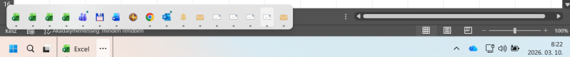 Sziasztok, a cégnél nemrég kaptam WIN11-et és a tálcával nem vagyok megelégedve, leginkább a "túlcsordulás" zavar. Win 10-en úgy használtam a tálcát, hogy nem volt csoportosítás. Én jobban szeretem, ha minden ami nyitva van a tálcán egyből látszik. Azt sem értem, hogy sokszor van hely a tálcán, de mégis berakja a 3 pontot, hogy ott vannak a további ablakok. Ezek plusz kattintások. Lehet ezen segíteni? Mivel céges gép, külső szoftver nem jöhet szóba, még a store is tíltva van. Ennél azért jobbra több ablak szokott látszani: