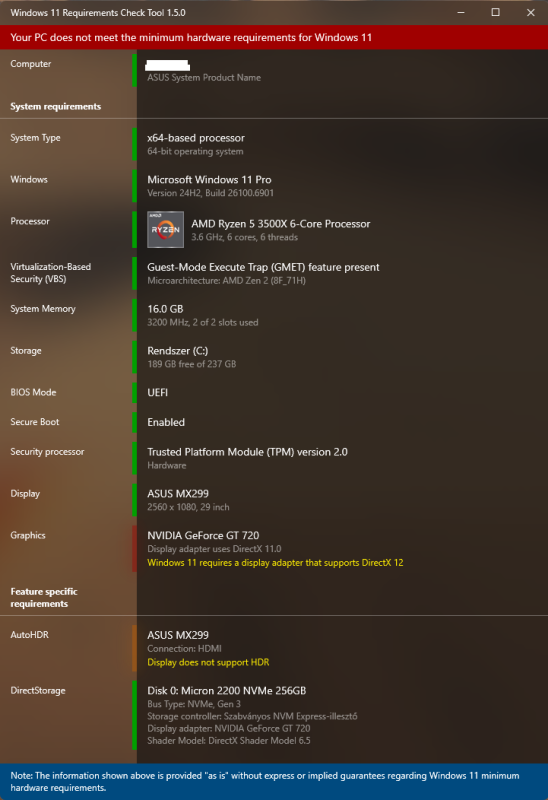 Van egy asztali gépem Ryzen 5800X3D CPU-val, tehát elég modern mindenben megfelel W11 24H2-nek. 3 lemez van benne: