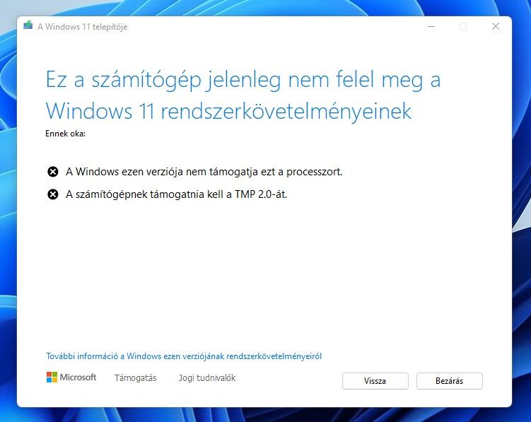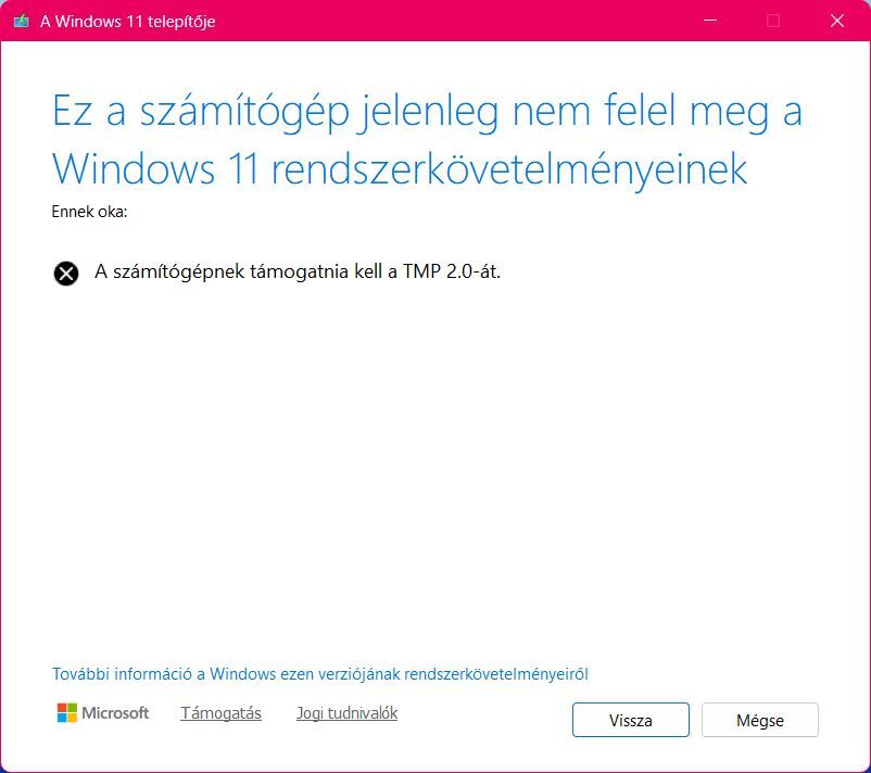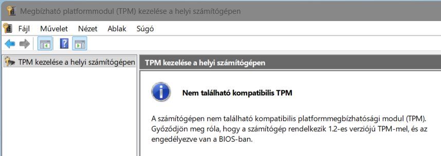 És most nem tudod, hogy kinek higgyél? Próbáljuk ki, például egy 25H2 rendszeren. BIOS-ban letiltottam a TPM modult: [tpm.msc] Becsatoltam egy 25H2 ISO telepítőt és elindítottam a setup.exe alkalmazást. A telepítő [ellenőrizte a gépet] és utána [leállt]. -