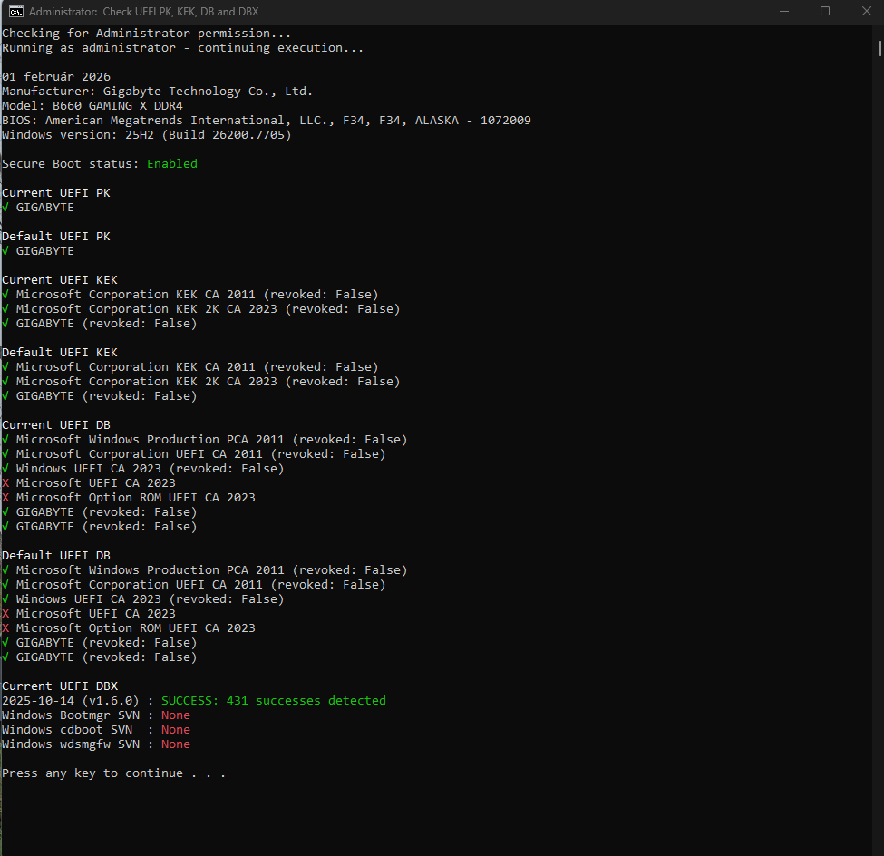 Linux nincs tervben így az nem probléma. De rátoltam a saját Dell laptopra is ott minden zöld szinte, pedig új korában csak a BOOT sorrendet állítottam be mert két SSD van benne, és nemrég a secureboot-ot engedélyeztem benne. Azon kívül viszont a laptop legalább 10 ha nem többször frissítette a BIOS-t magától, pedig még éppen 6 éves lesz májusban.