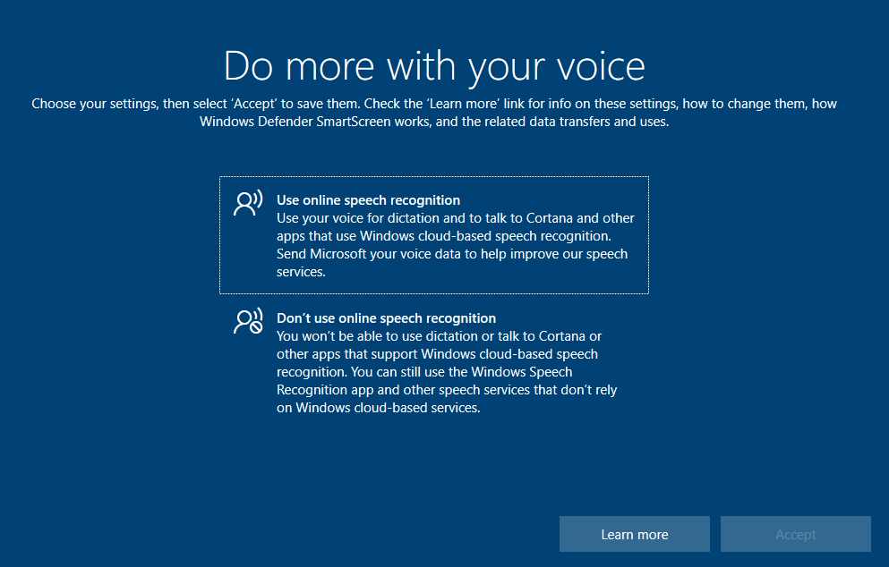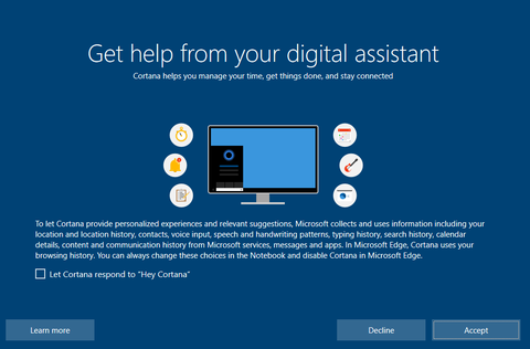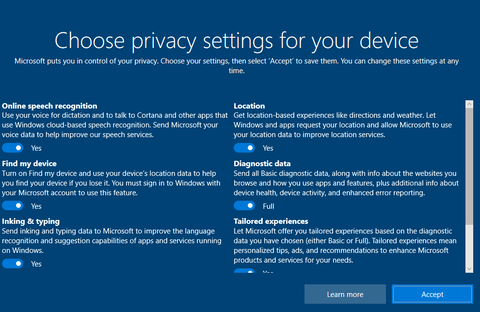 Első esetben nem is dobta fel azt a cortanás kérdést. Második esetben meg nem kellett 6x-7x kattintanom, az összes privacy setting 1 képernyőn volt...
