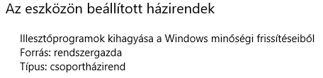 Ez egy itthoni gép és én sosem állítottam csoportházirendet. Benéztem oda ahol ezt írja, de nincs semmi se beállítva neki. -