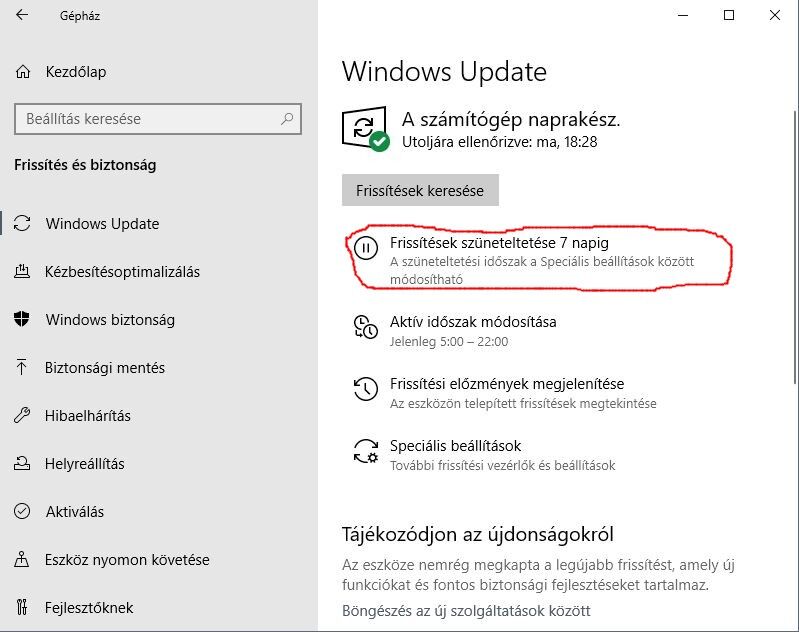 Eddig nem láttam az előző verziónál, a 1809-nél csak most a 1903-nál. Ez most azt jelenti, hogy 7 napig nem kapok frissítéseket? Hol/hogyan lehet ezt eltüntetni? Vagy csak kikapcsolni.