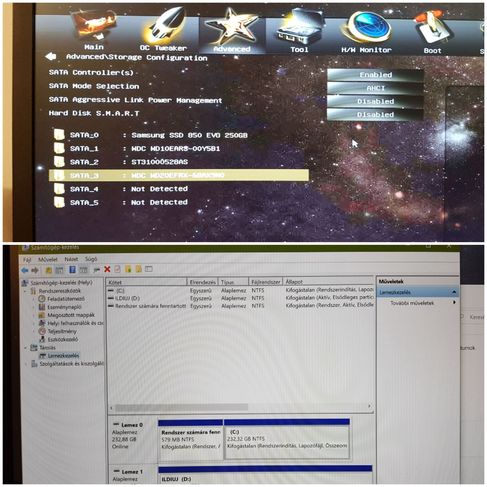 Jelenleg a 3db HDD-bol 1-et lat a windows 10, volt kabelcsere is stb stb, a BIOS viszont mindent lat.