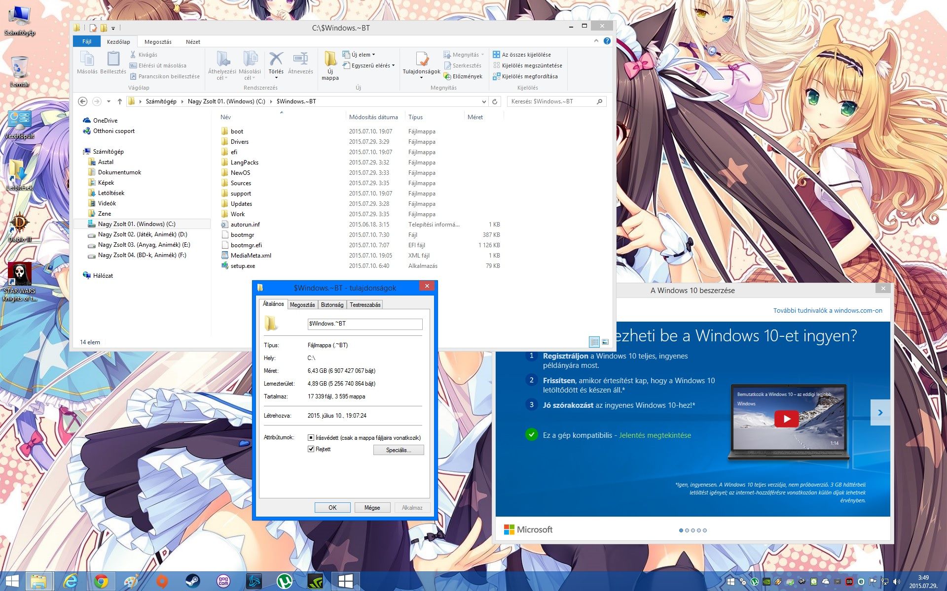 Nemrég lehúzott a gépem egy "$Windows.~BT" nevű könyvtárat, melyben - ahogy sejtem - valószínűleg a Windows 10 telepítője lehet. Azt tudom, hogy csak ma jelent meg és nem mindenki kapja meg egyből, viszont már nagyon szeretném kipróbálni.