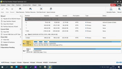 Vettem egy SSD-t, amire szeretnék friss Windowst telepíteni. A kérdésem az lenne, hogy a jelenlegi merevlemezen milyen módon kell összevonnom a partíciókat (C és F a képen), hogy a teljes lemez F, az SSD pedig C jelű legyen? Vagy telejesen mindegy, feltolom az SSD-re a Win-t, és utána szabadon átnevezhető bármelyik?