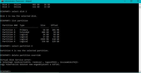 Ja, hát úgy nem is, ha lapozófájl, vagy egyéb rendszerfájlok vannak rajta, ami oda van írva a hibaüzenetben. Ahol ha már DiskPart, akkor pl. a detail partition, detail disk stb. parancsok kilistázzák a partíció, lemez tulajdonságait, azokból is látszik, hogy mik vannak beállítva. Vagyis ha az említett fájlok vannak a köteten, lemezen, akkor nyilván meg kellene szüntetni azt az állapotot ahhoz, hogy törölni, majd formázni lehessen.