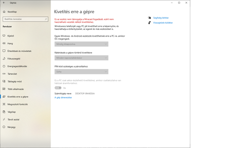 A belinkelt képeken a fogadás funkció látszik, azaz más eszközről próbálnál a számítógép képernyőjére castolni (ezt használtam én is, pl. android mobilról win10-es laptopra a nagyobb kijelző miatt).