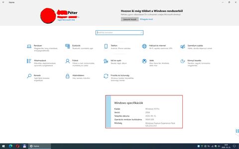 Most nézem itt a fő gépemet (desktop gép) ami szinte napra kész (még nem ajánlotta fel a 20H2-t), és nekem nem írja ki a felhaszálót a Gépház tetején.