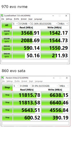 Egyébként a 10 másodperc azért egyáltalán nem mondható olyan lassúnak, meg pláne ha úgy értendő, hogy a PC bekacsolásától, illetve a POST-tól amíg bejön a Windows 10 asztala. Ha ennél jóval tovább tart, meg akár percekig, akkor van miről beszélni.A CDM teszt a SATA SSD-nél nyilván irreális értékeket mutat, ami akkor lehet ennyi, ha be van kapcsolva a Samsung Magician Rapid Mode funkciója, vagy esetleg a tesztelőprogramban nem stimmel valamilyen beállítás.