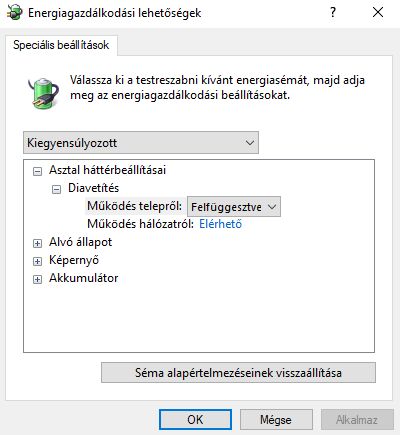 A probléma ott kezdődik, hogy az összes energia sémában csak ennyit látok (legyen az kiegyensúlyozott vagy teljesítmény centrikus vagy ha újat hozok létre) és nem tudom állítani a merevlemezre vonatkozó dolgokat.