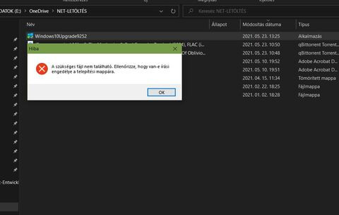 Ne a onedrive-ból indítsd a telepítést, hanem rakd át C-re a frissítési segédet.
