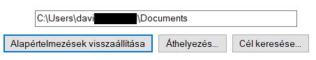 Mint látható, a OneDrive mappába belülre került, ezt szeretném megváltoztatni. Ha megnyomom az alapértelmezés gombot, akkor vissza is írja arra, amire szeretném: