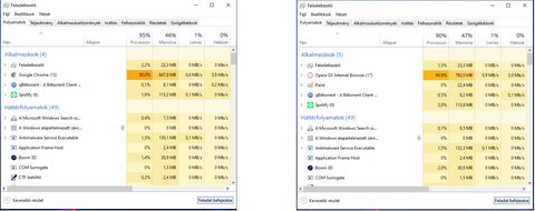 Windows 10-et használok egy Acer Swift5-ön (alig pár éves) és nagyon gyorsan merül az akksija. Pár hete figyeltem fel rá (az elmúlt hónapokban nem én használtam), de annyit tudok, hogy a windos hangeszközgrafikon a ludas. Nagyon húzza a procit és az akksit is. Lefrissítettem az audio drivereket (a régit nem töröltem le, nem tudom hogy kell, de azt írta ki, hogy frissítve). Ma újra láttam ezt a faja progit a feladatkezelőben és bezártam. Most újra halk, nem búg minden.