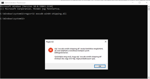 Nem folytatható a kód végrehajtása, mert nem található az EOSSDK-Win64-Shipping.dll. A program újratelepítésével esetleg megoldható a probléma.