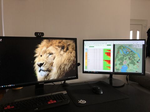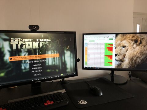 A jobb oldalon található monitoron van az a két böngésző ablak, amit szeretnék folyamatosan látni játék közben.