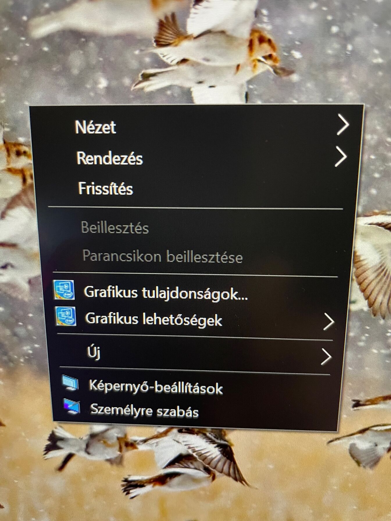 A problémám az lenne, hogy szeretnék 2 monitort használni a gépemen.Integrált Intel 530-as vga van benne és minden lehetséges kimenet adott.Az elsődleges egy hagyományos D-Sub a második egy HDMI-s monitor lenne.Az Intel grafikus központban viszont hiába nyomkodom az észlelés gombot azt írja nem található a másodlagos kijelző. A driver a legfrissebb intel oldaláról frissítve.Van azonban még egy furcsaság a képernyőn ha nyomok egy jobb klikket ez a kép fogad: