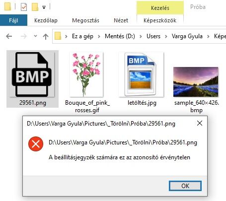 További hiba hogy ha a win fájlkezelőből (vagy az asztalra küldött parancsikonból) nyitom meg a képfájlokat, hibaüzenetet kapok: "A beállításjegyzék számára ez az azonosító érvénytelen."