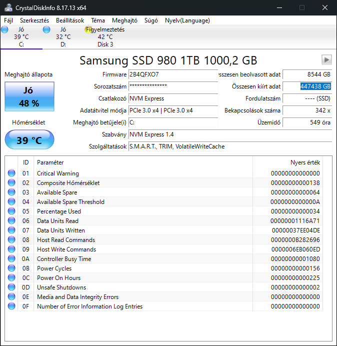 Egy HDD-m vacakolt ezért felraktam a sentinelt és meglepő adatok fogadtak