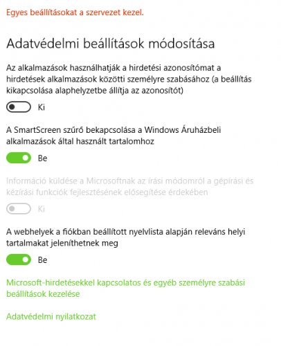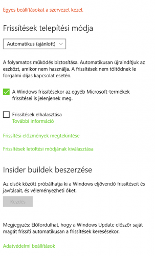 Emiatt írja pirossal, hogy egyes beállításokat a szervezet kezel... -
